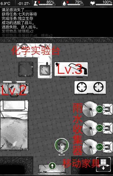 1. 食物问题:前期食物可是个大问题。别急,我教你一招——种植!拿到第一瓶或第二瓶气溶剂后,优先做出室内温室(农田),种植一些小麦或土豆。当你拥有两块土豆田和几个雨水收集器时,你就基本不愁吃喝了。