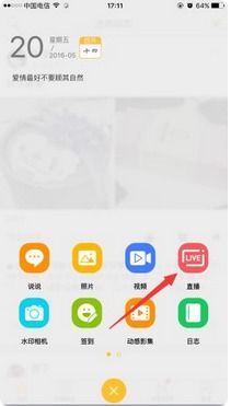 2. 点击直播入口:在QQ空间首页,点击右上角的“+”号,选择“直播”。