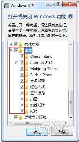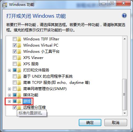 在列表中找到“游戏”选项,勾选它,然后点击“确定”。